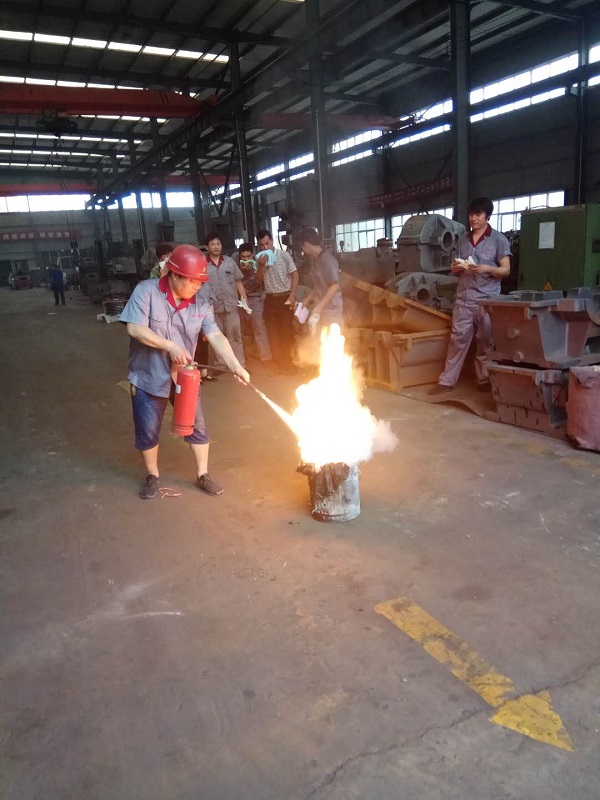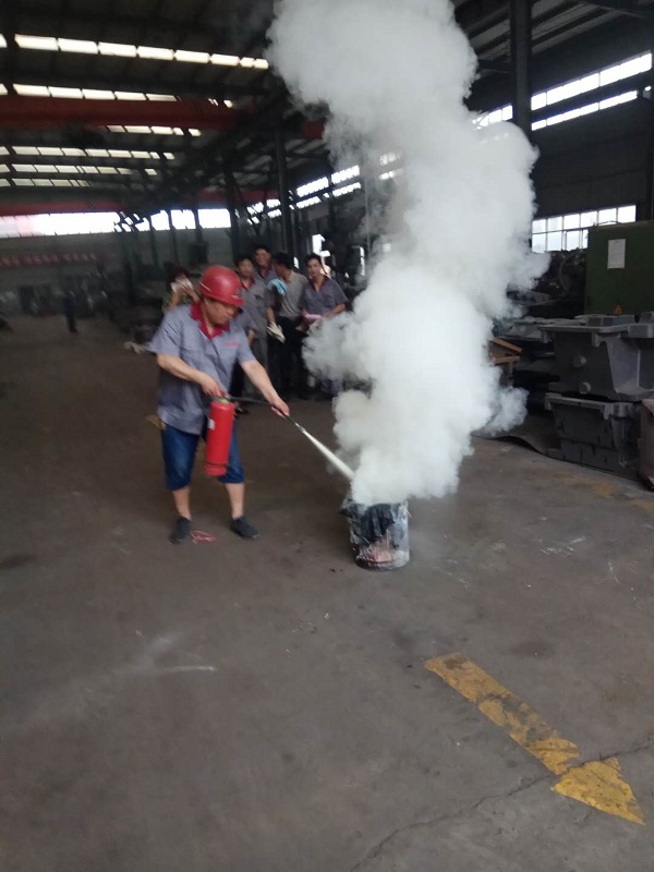 4、安全負(fù)責(zé)人和車(chē)間領(lǐng)導(dǎo)一同為大家展示發(fā)生火災(zāi)時(shí)滅火器演示